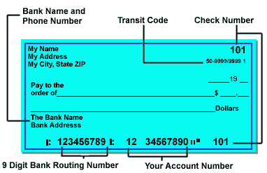 2. Please have ready a check with the information indicated in the image below. This information will be necessary to complete your order.